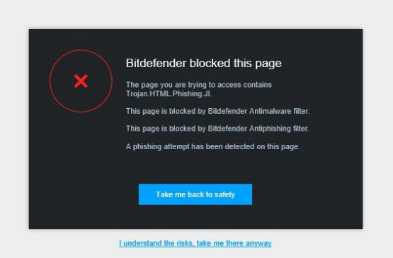 BitDefender scored a perfect 100% as well, but again, we'd like to see them completely block the page with no option to continue.